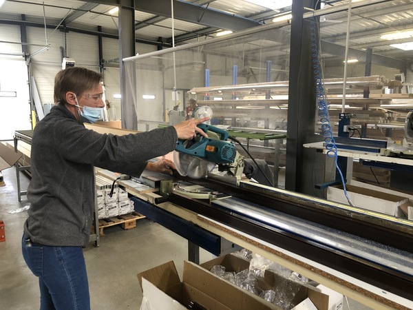 Ensuite, nous vérifions chaque bon de commande pour déterminer la longueur à laquelle couper le coffre et la toile de la moustiquaire. À l’aide d’un mètre et d’une scie, nous découpons le boîtier aux dimensions requises et vérifions la précision des coupes.