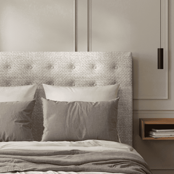 Notre tête de lit capitonnée constitue une excellente alternative pour ceux qui désirent un mélange parfait entre élégance et confort. Le capitonnage crée une allure raffinée, ajoutant une touche de luxe à votre chambre à coucher. De plus, nous vous proposons une gamme variée de tissus et de finitions, vous permettant de personnaliser votre tête de lit selon vos goûts et de créer une pièce unique.