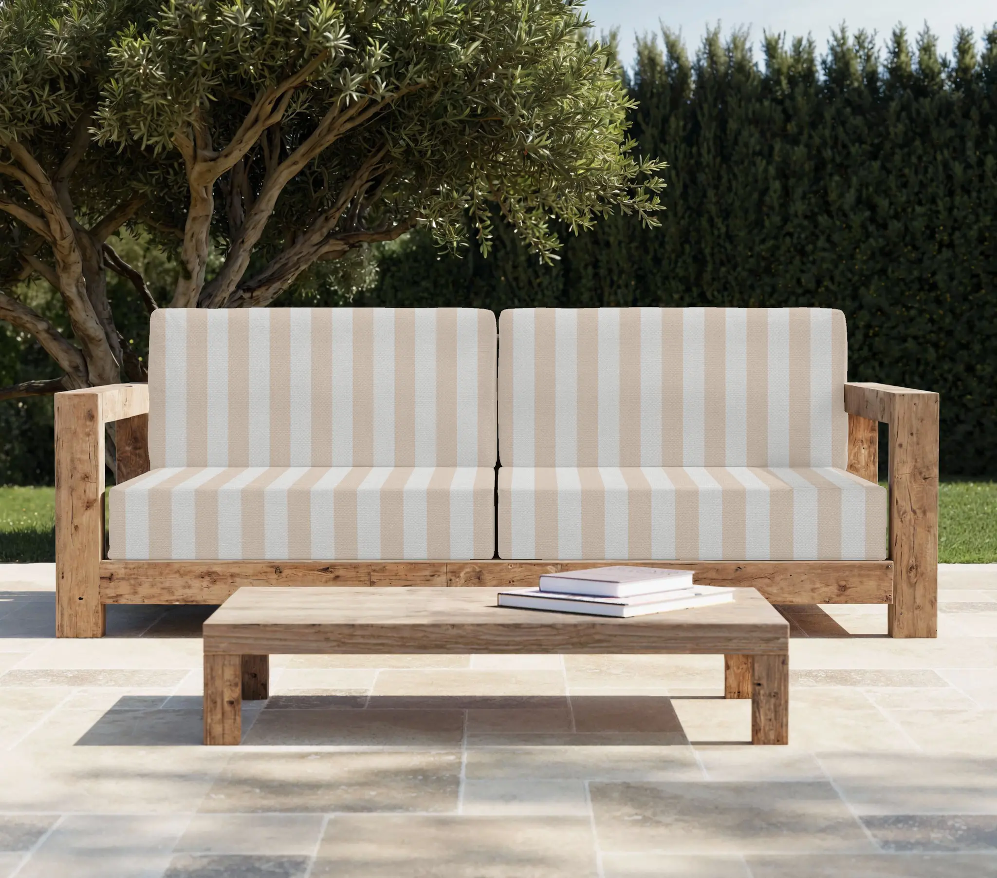 Votre coussin banquette extérieur peut être assorti à nos Bains de soleil à Rayures, étant donné que ces produits sont confectionnés avec le même tissu.