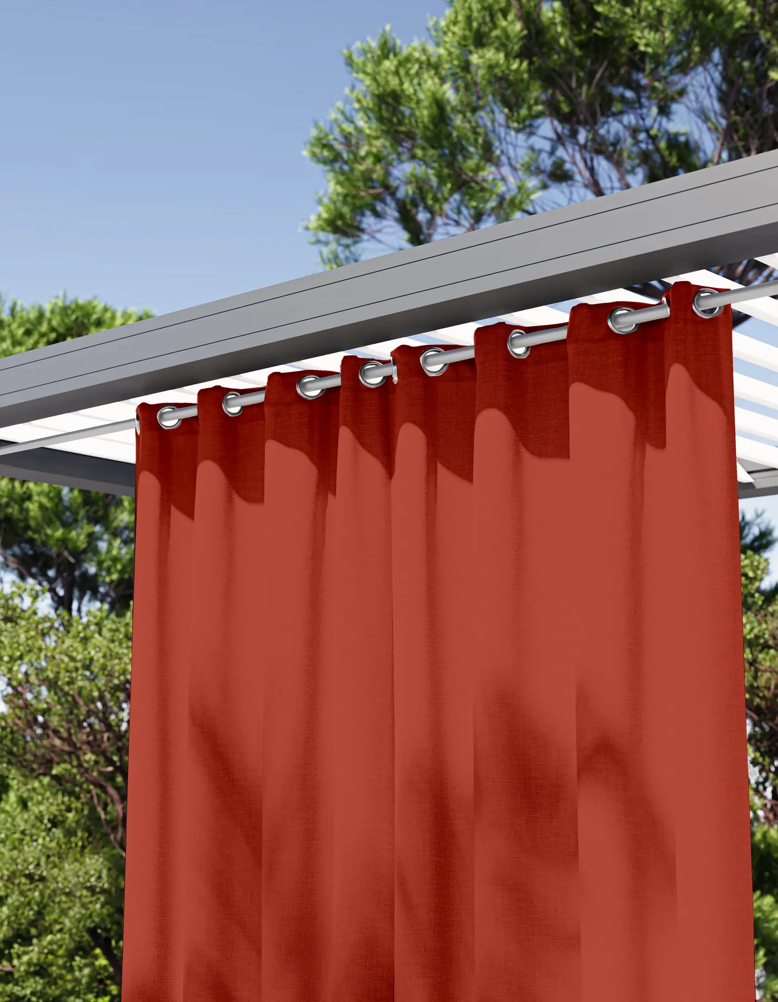Un rideau extérieur peut convenir pour une terrasse, un balcon, une pergola, un patio, etc.