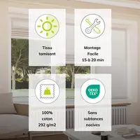 Ce tissu est certifié Oeko-Tex® Standard 100. Ce label assure la conformité légale des produits textiles contrôlés et garantit l’absence de substances nocives. Cependant, l'option doublure du rideau n'est pas certifiée Oeko-Tex®.