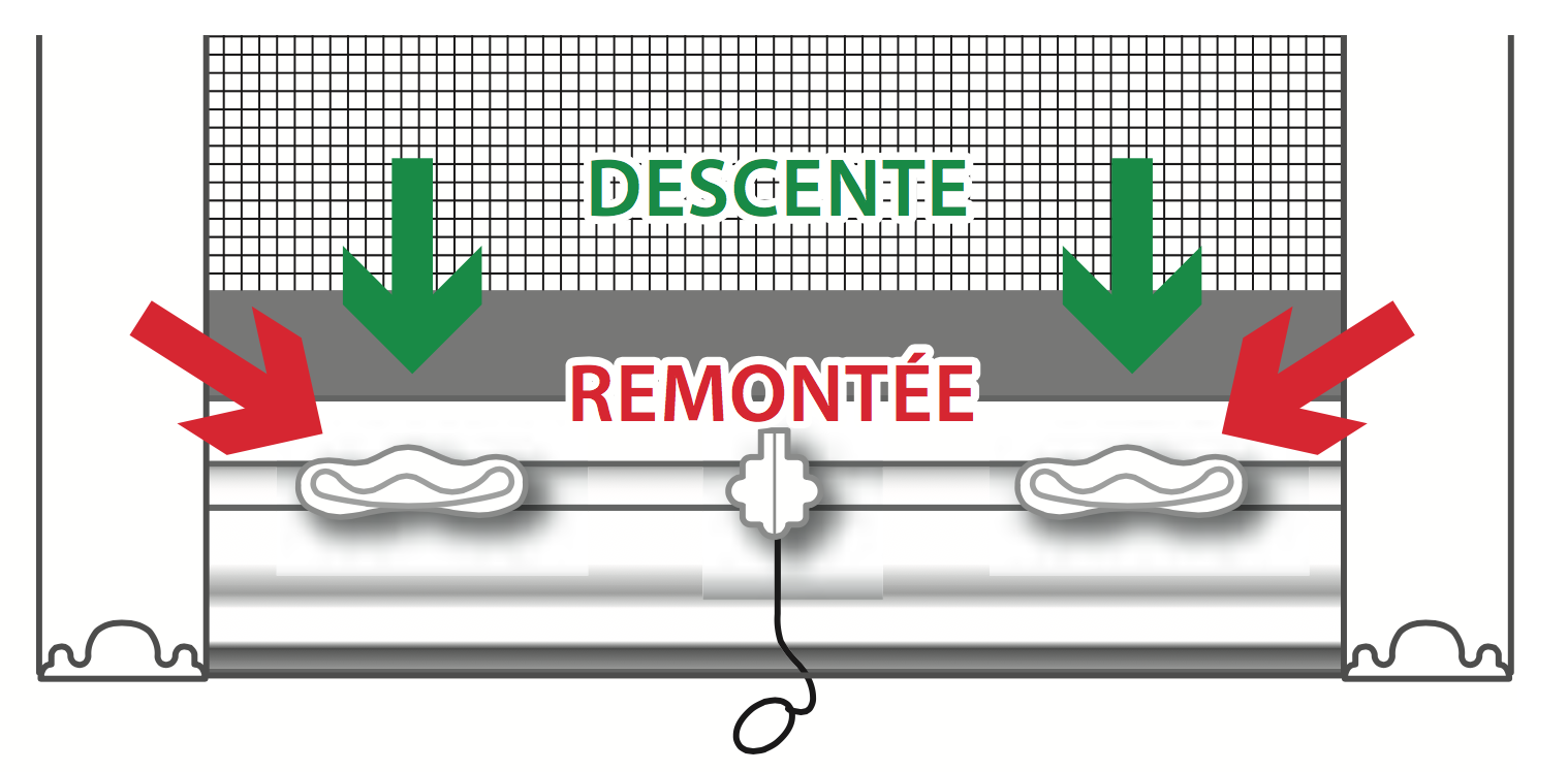 Attention : Pour éviter une remontée trop brutale de la moustiquaire en toile de fibre de verre, accompagnez-la jusqu'à son point haut.
